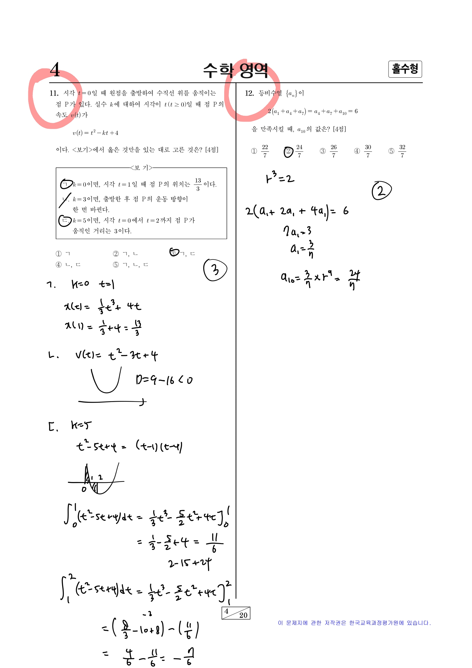 그래서 1시간 40분 안에 미적분까지 모든 문제를 다 풀수가 없다. (틀리는거랑 별개로..) 한 20분만 더 있으면 다 풀 것 같은데.